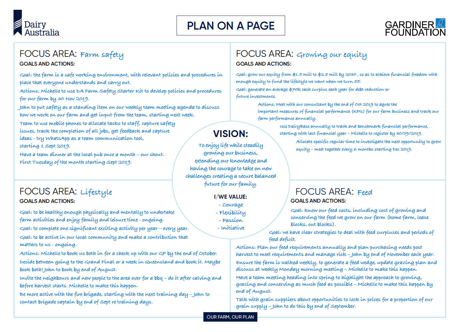 • Communicate your Plan on a Page to stakeholders in your farm business